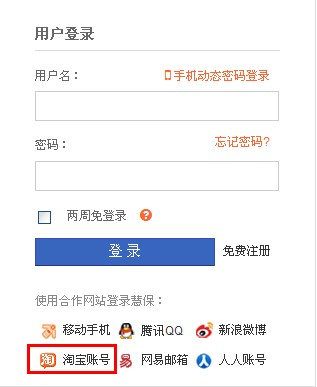 如果您是淘宝会员,您可以使用您的淘宝账号进行登录。
