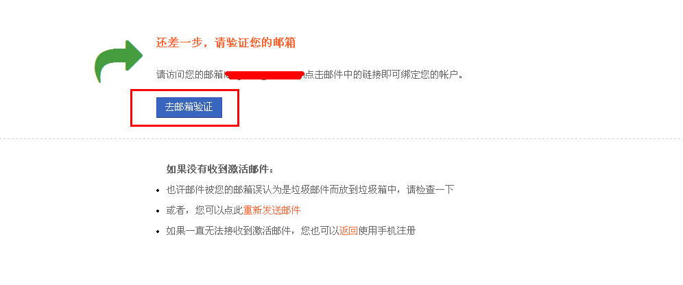 2、信息填写完毕后点击“注册”进入验证邮箱页面。