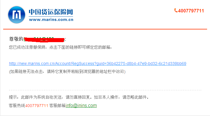 3、进入邮箱会看到中国货运保险网发送的邮箱验证链接,点击链接完成注册。